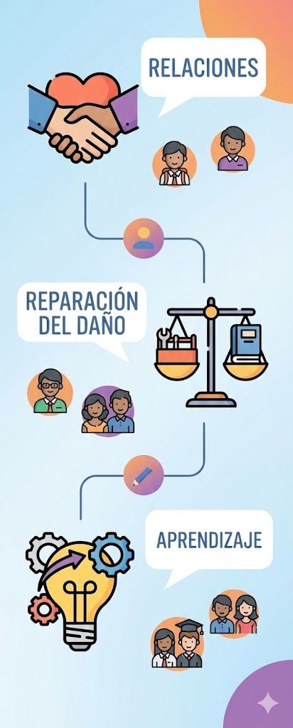 La encuesta que vas a realizar a continuación se basa en el enfoque restaurativo de la convivencia, centrado en las relaciones, la reparación del daño y el aprendizaje a partir de los conflictos. Su objetivo es promover la participación activa de toda la comunidad educativa —alumnado, familias, profesorado y personal no docente— en la construcción y toma de decisiones relacionadas con la convivencia. Desde esta perspectiva, la convivencia se concibe como un objetivo compartido y, al mismo tiempo, como un proceso educativo que enseña a convivir, cuidar los vínculos y asumir responsabilidades comunes.